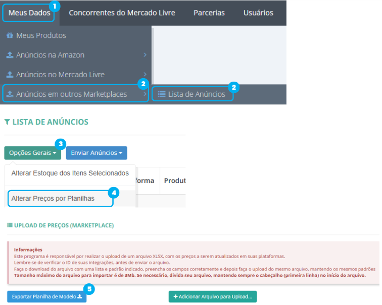 Existem duas formas de alterar os preços dos seus anúncios por integração: