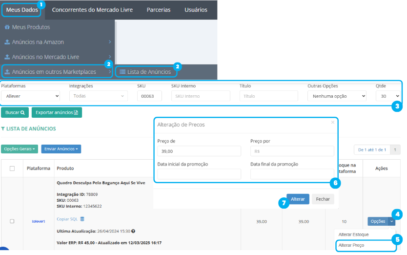 - Se algum anúncio não estiver em sua listagem, solicite a importação à nossa equipe para que ele possa ser gerenciado pelo sistema.