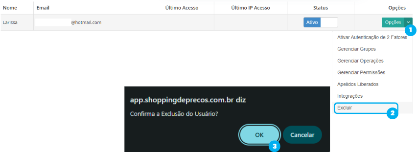 Para excluir um usuário do Shopping de Preços, siga estes passos: