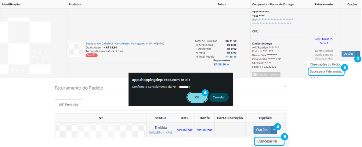 Para cancelar uma nota fiscal de um pedido, siga os passos abaixo: