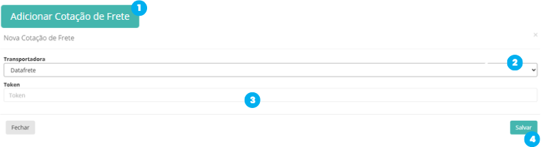 - Por fim, cole o token fornecido pela DataFrete e, em seguida, clique no botão "Salvar".