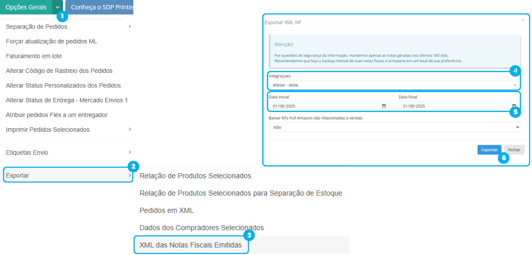 Os XMLs das notas fiscais emitidas no Shopping de Preços ficam disponíveis para exportação por um período de 180 dias.