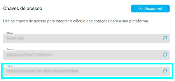 Na aba chave de acesso, copie o token disponível. Ele será utilizado na autenticação com o Shopping de Preços.
