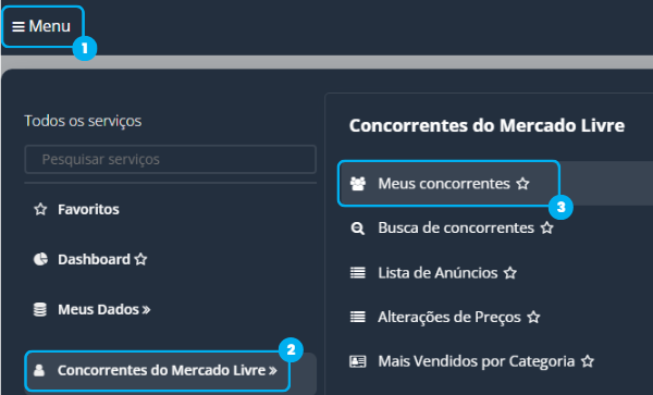 Acesse Menu > Concorrentes do Mercado Livre > Meus Concorrentes