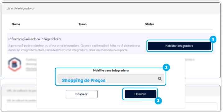 Com o token em mãos, o próximo passo será inserir essa informação no seu painel do Shopping de Preços para finalizar a integração.