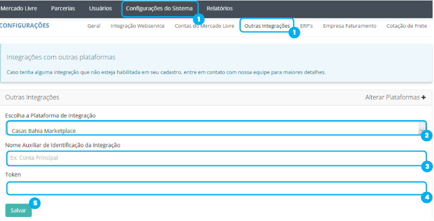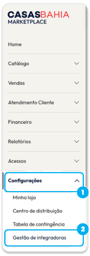 - Selecione "Casas Bahia Marketplace" na lista de plataformas de integração.