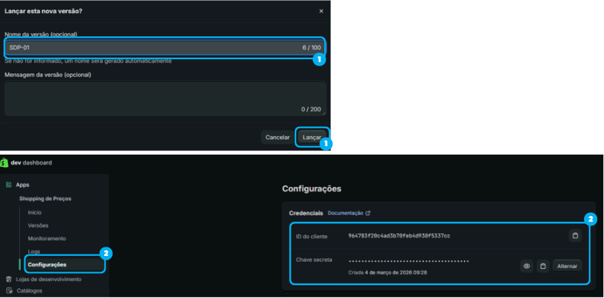 - Após configurar, clique em Lançar. No campo Nome da versão, digite: SDP-01.