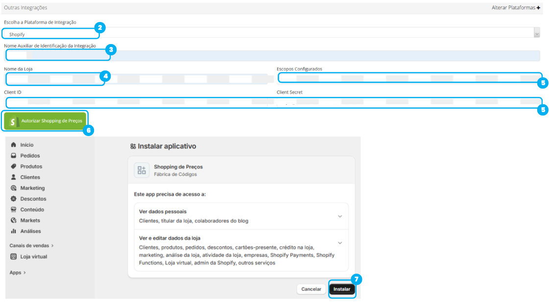 Com os Escopos, Cliente ID e Cliente Secret em mãos, o próximo passo é inseri-las no seu painel do Shopping de Preços para concluir a integração.