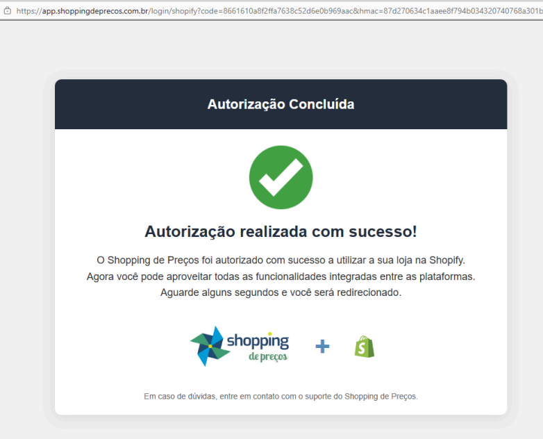 - Clique no botão "Autorizar Shopping de Preços".