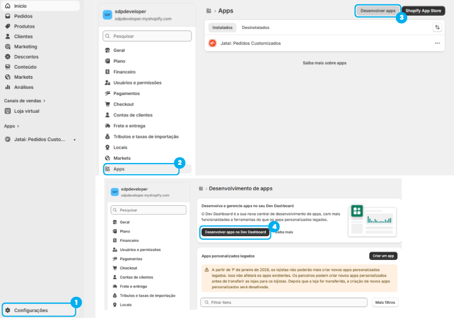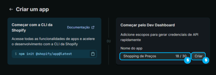 1. Criando o aplicativo no painel da Shopify